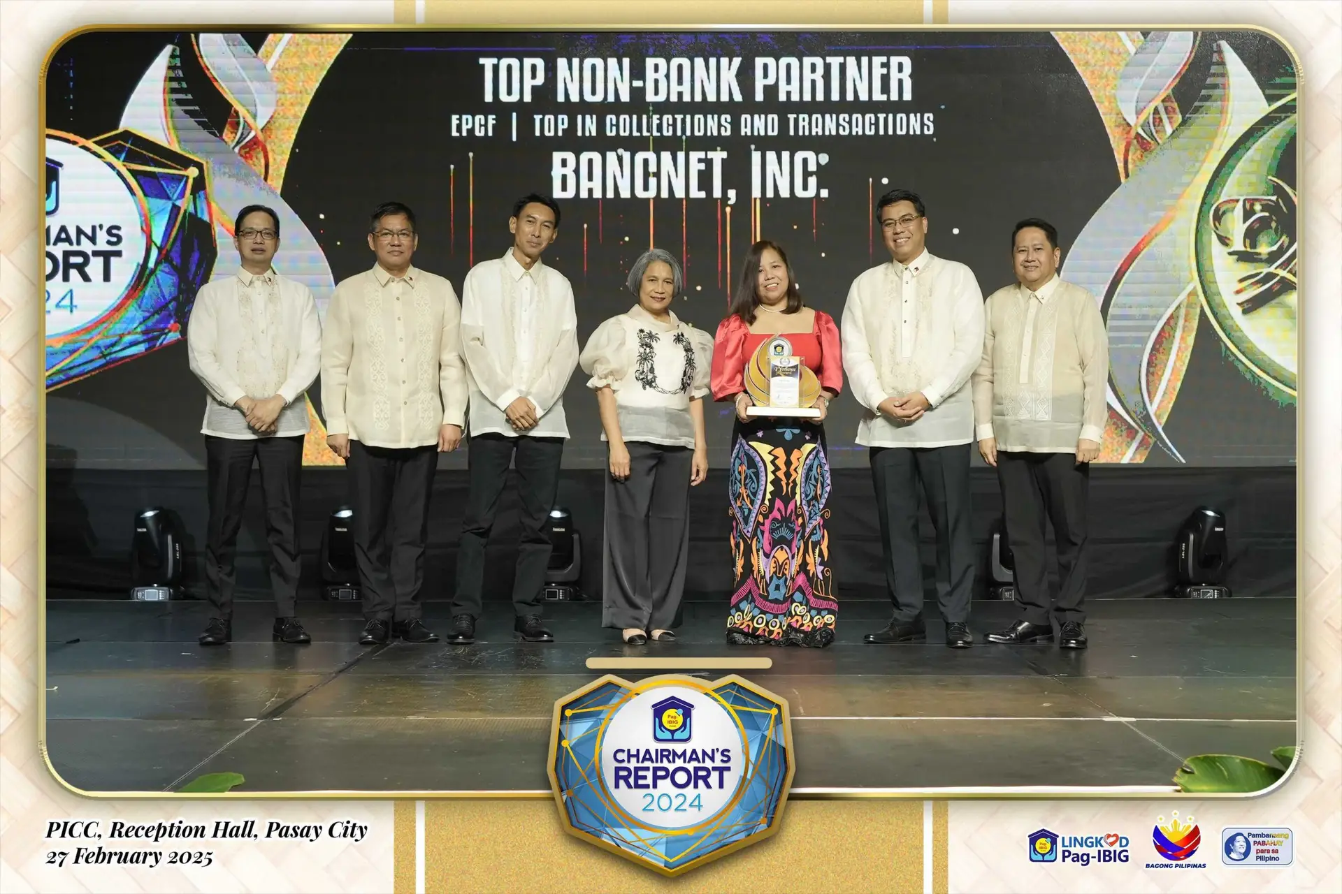 BancNet was awarded once again by the Home Development Mutual Fund (HDMF), more popularly known as Pag-IBIG Fund, as Top Non-Bank Collection Partner during the Pag-IBIG Fund Chairman’s Report for 2024 and awards ceremony held at the PICC in Pasay City on February 27, 2025.